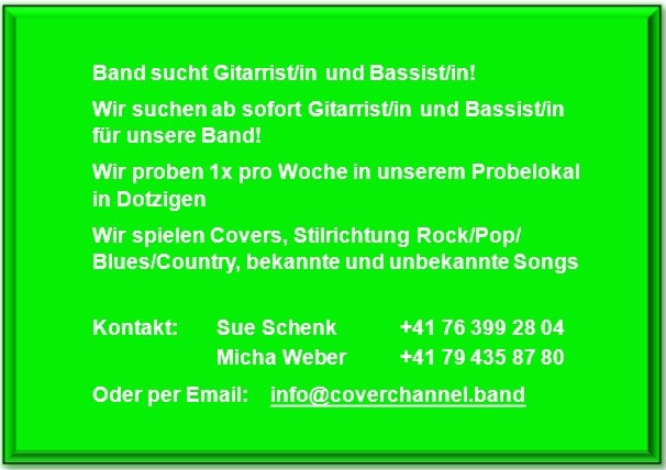 Coverband sucht Gitarrist/in und Bassist/in Bern