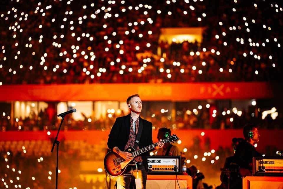 Ich bin seit 15 Jahren professioneller Gitarrist, Gitarrenexperte bei Rockin’1000 und trete regelmäßig auf.