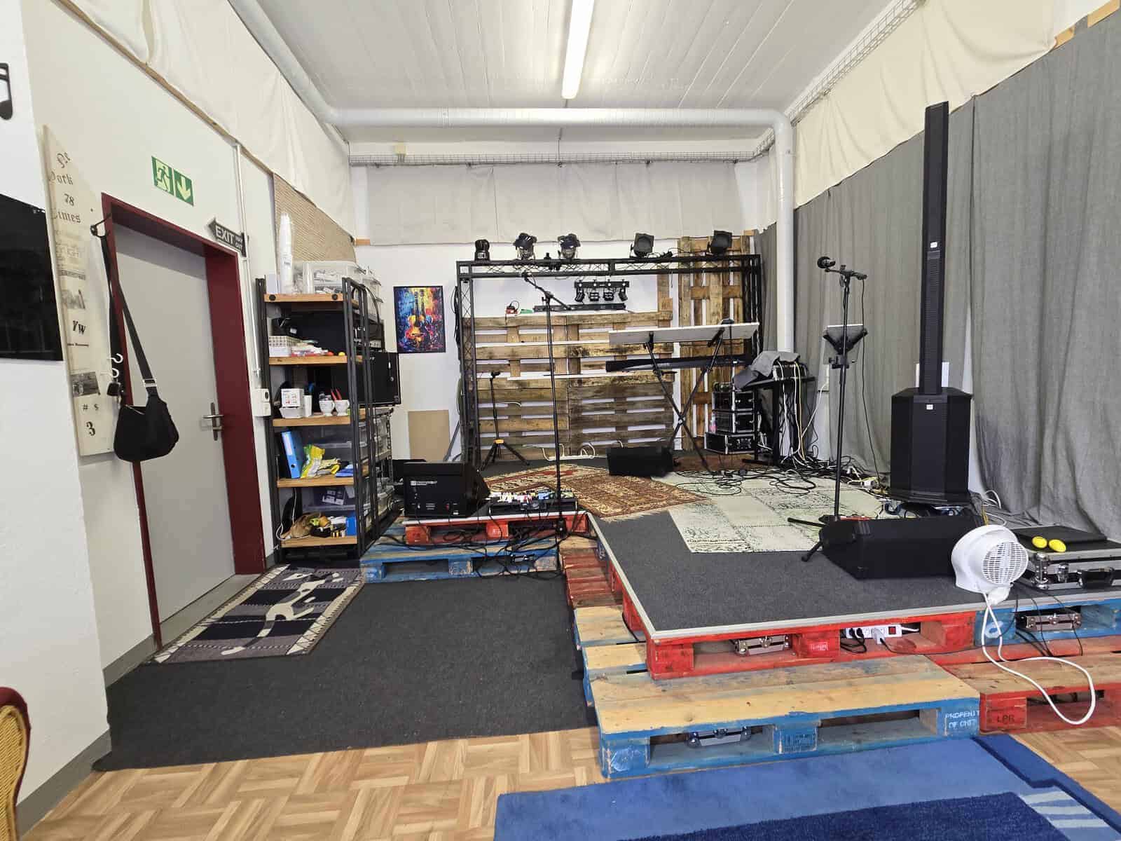 Jetzt kontaktierenWir vermieten einen voll ausgestatteten Bandraum in Tägerwilen. PA, Drums, Amps, Kühlschrank, Tageslicht! Krach bis 22 Uhr! Auch als Proberaum...